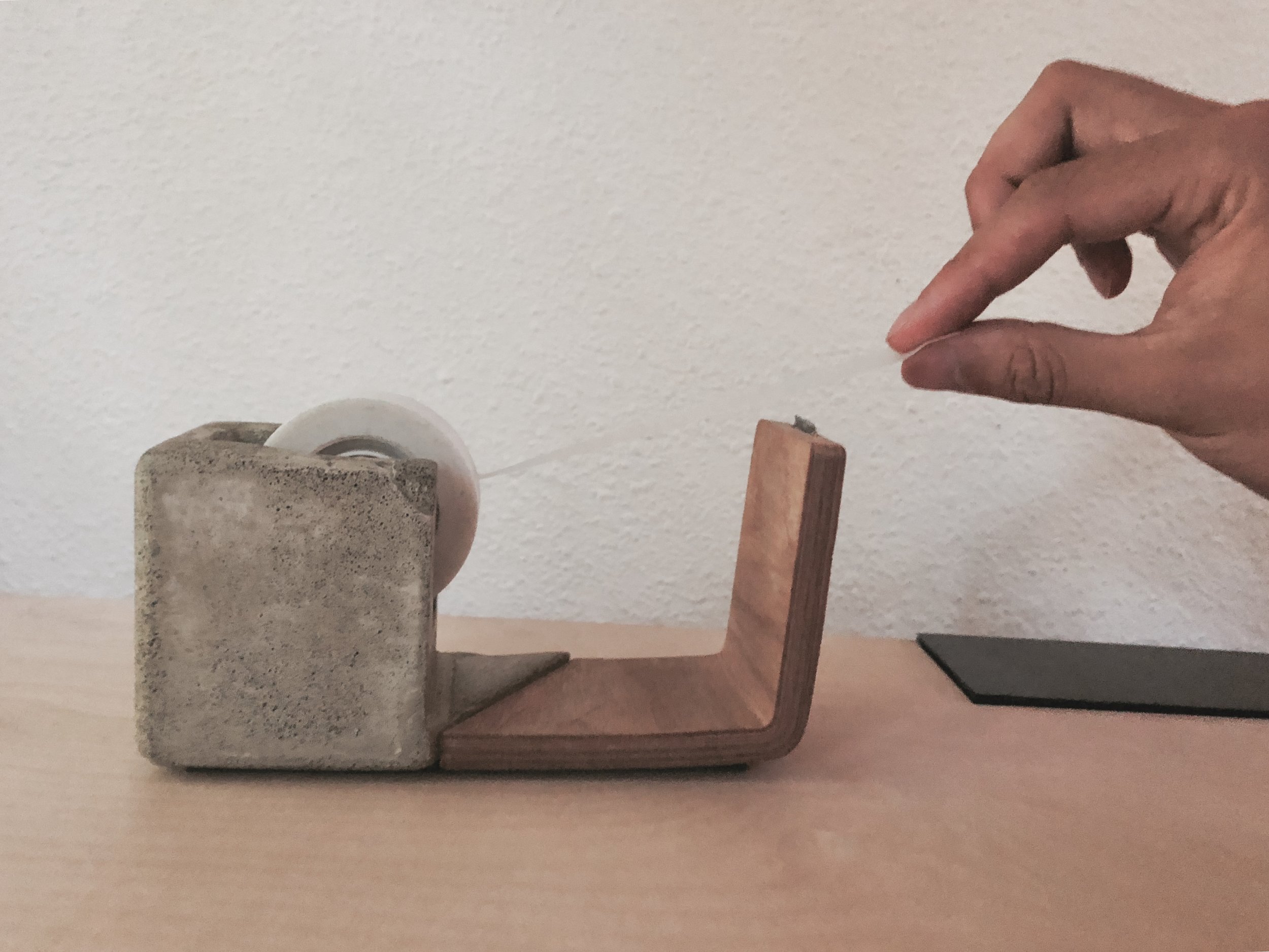 Inspired by molded plywood furniture and a Le Corbusier lamp, I wanted to design a high quality tape dispenser. Since the tape dispenser is already a permanent object on many desks, I was motivated to create a product that functioned with the permanence and simplicity of well made furniture. Materials were chosen naturally due to the necessity of weight distribution and the user experience I wanted to create.
